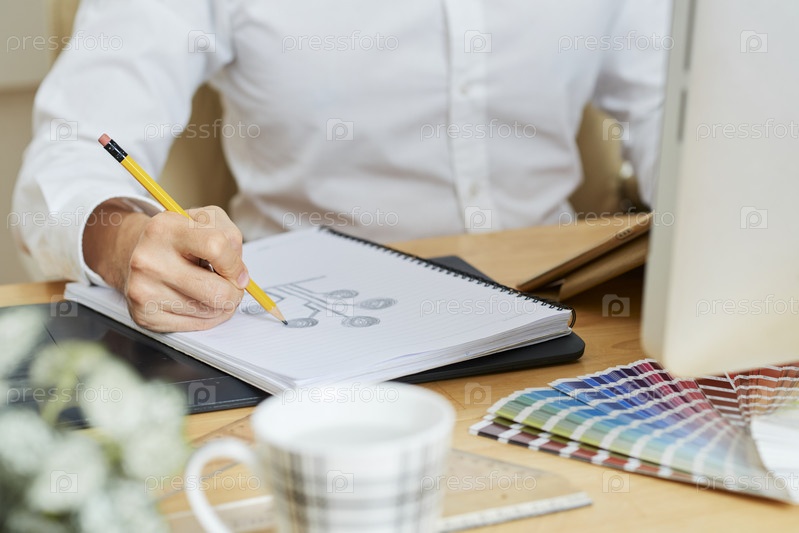 Дизайнер работает над эскизом