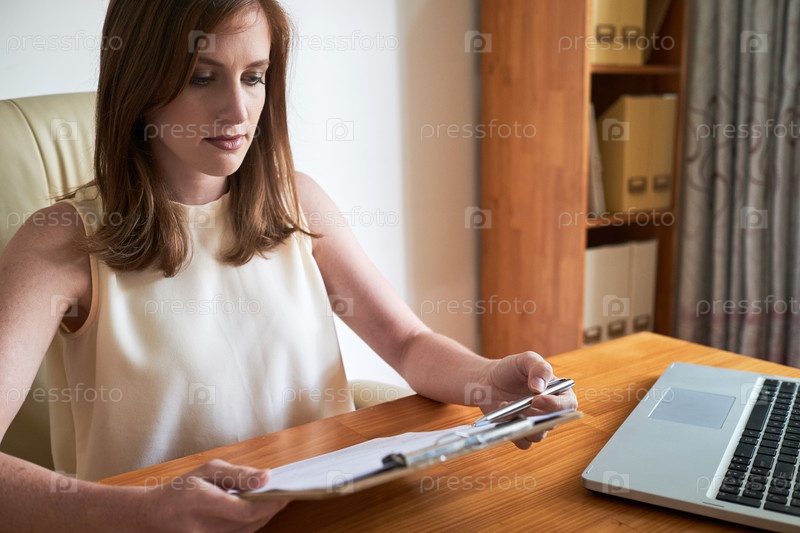 Деловая женщина, изучающая бизнес-контракт