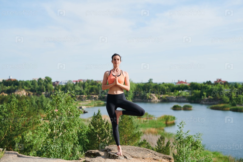 Выполнение позы дерева на карьере