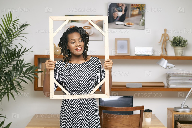 Креативная женщина позирует с рамкой