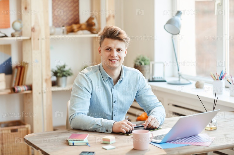 Позитивный молодой парень на рабочем месте