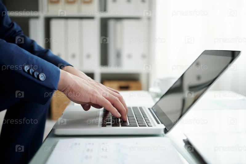 Бизнесмен, печатающий на ноутбуке