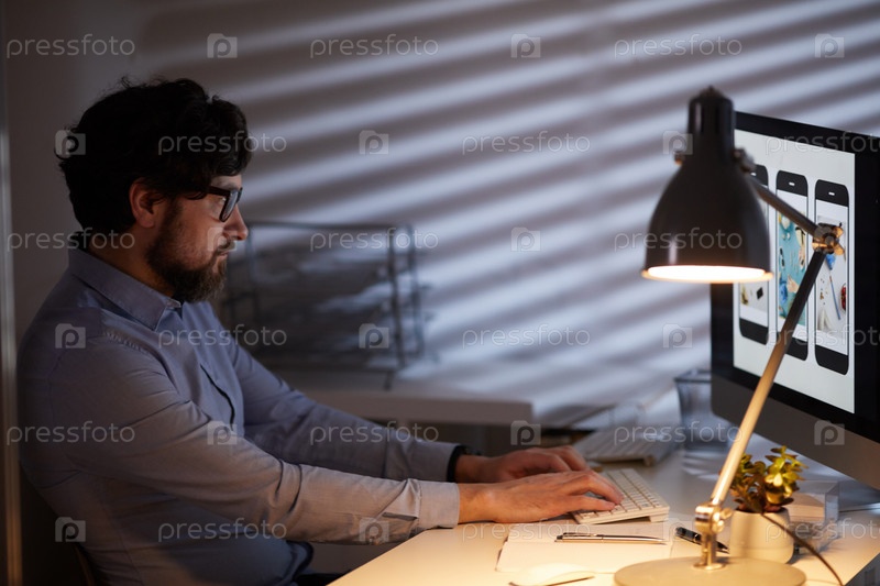 Мужчина, работающий на компьютере