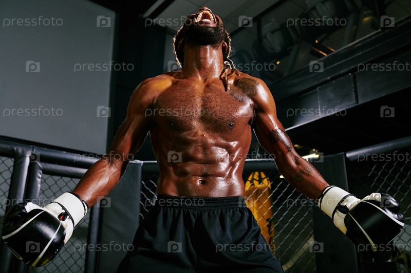 Потный боксер, кричащий громко