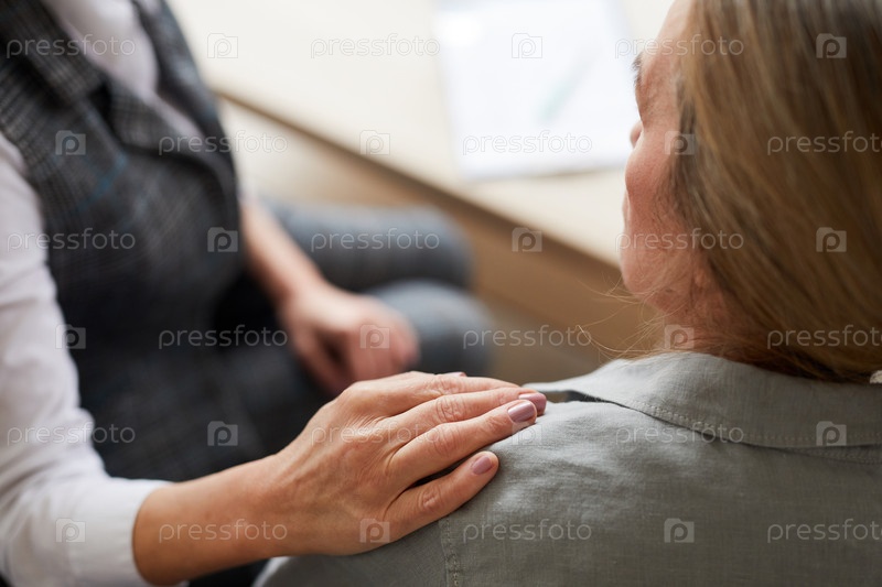 Заботливый психолог утешает женщину-пациента