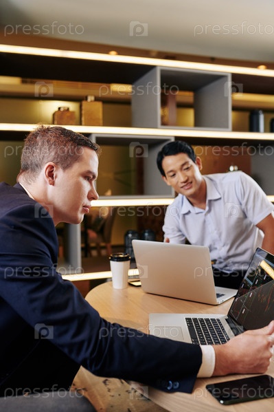 Бизнесмен проверяет данные фондового рынка