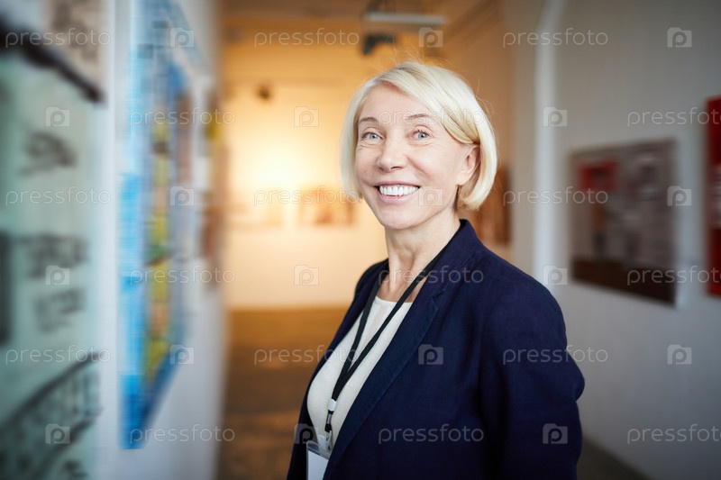 Улыбающаяся женщина в художественной галерее