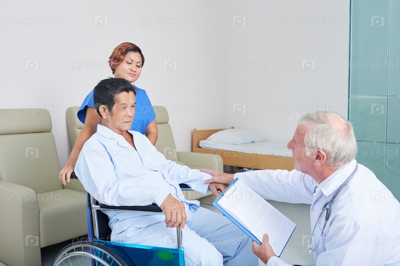 Врач, посещающий старшего пациента в доме престарелых