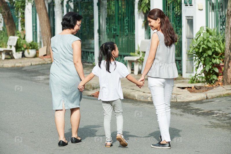 Азиатская семья на открытом воздухе в городе