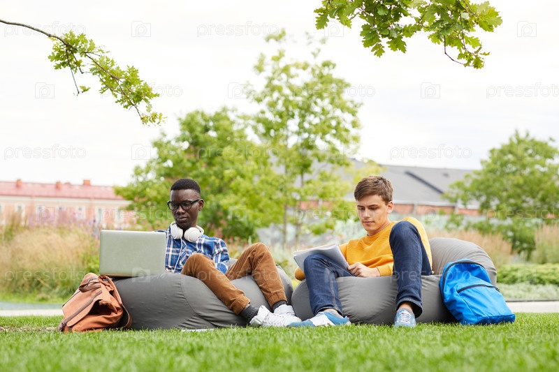 Студенты отдыхают на открытом воздухе в кампусе