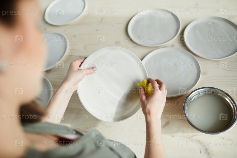 Женщина-керамик, делающая пластины