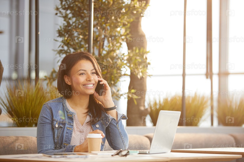 Молодая женщина занята телефоном