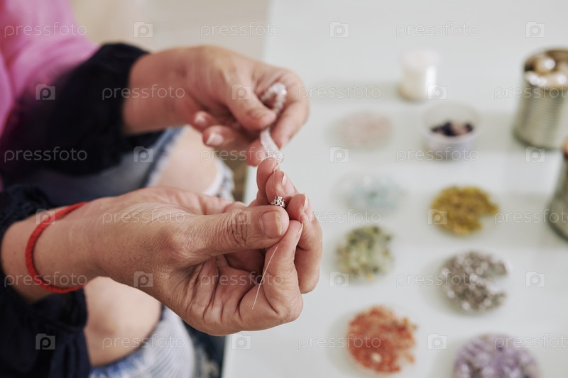 Женщина, надевающая бусы с кремом