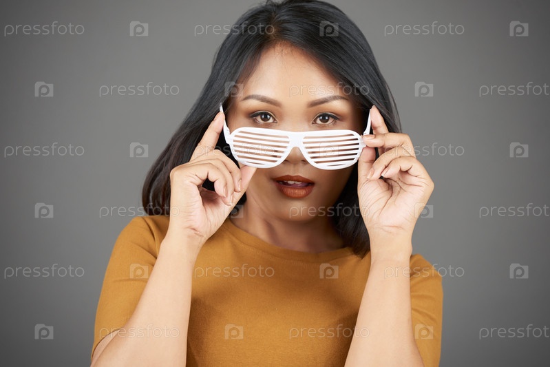 Женщина, надевающая очки