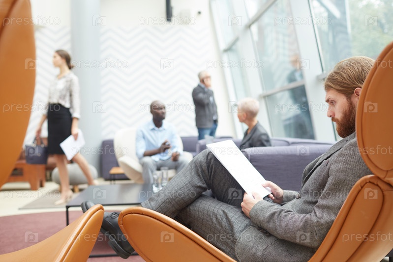Бородатый бизнесмен отдыхает в кресле
