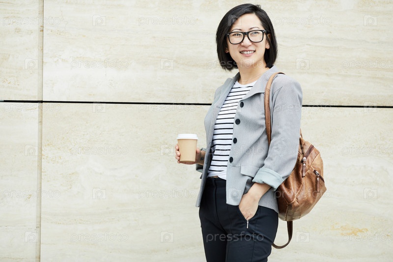 Азиатский студент позирует на открытом воздухе в современном стиле