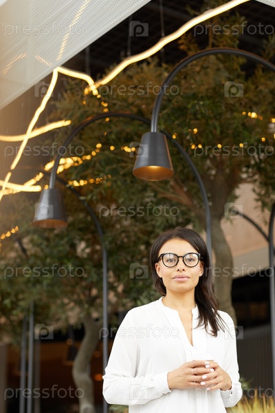 Деловая женщина пьет кофе