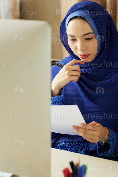 Мусульманская бизнесвуменка читает письмо