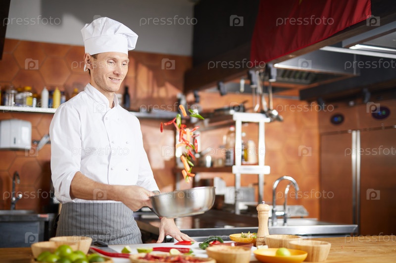 Красивый шеф-повар готовит овощи