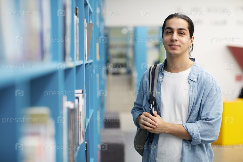 Студент, позирующий в библиотеке колледжа