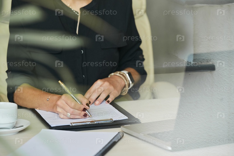 Деловая женщина, пишущая в документе