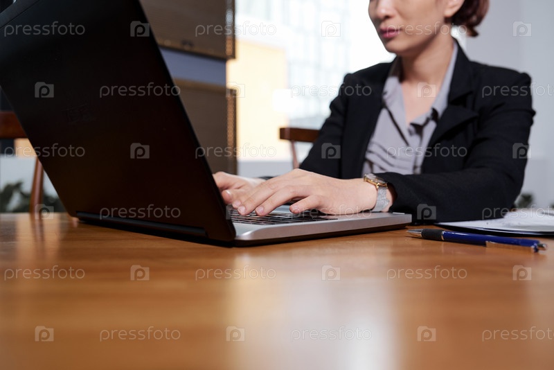 Бизнес-леди работает на ноутбуке