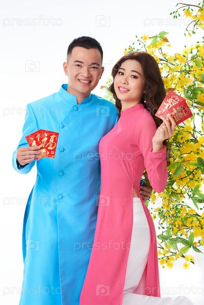 Пара наслаждается празднованием Тет