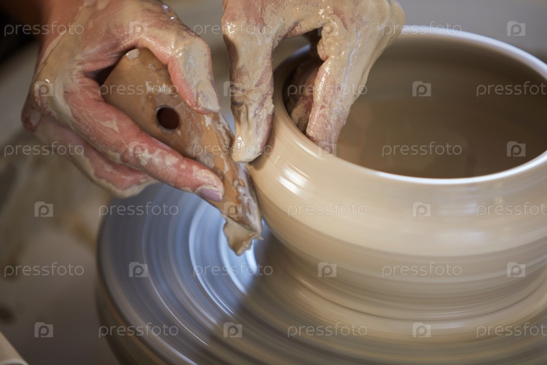 Женские руки формируют глину