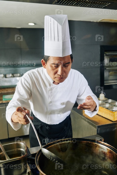 Шеф-повар готовит блюдо