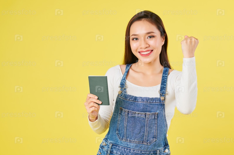 Счастливая женщина, показывающая паспорт