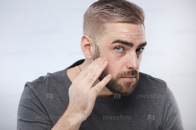 Уверенный мужчина, использующий продукт по уходу за кожей
