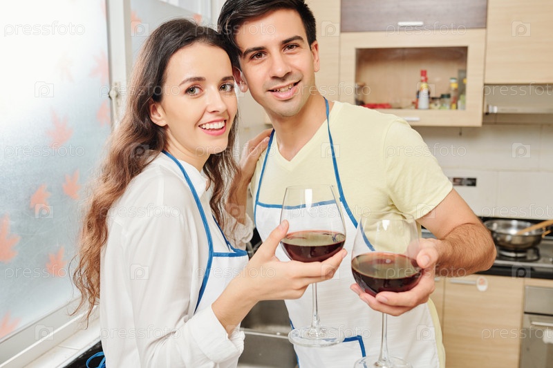 Влюбленная пара пьет вино