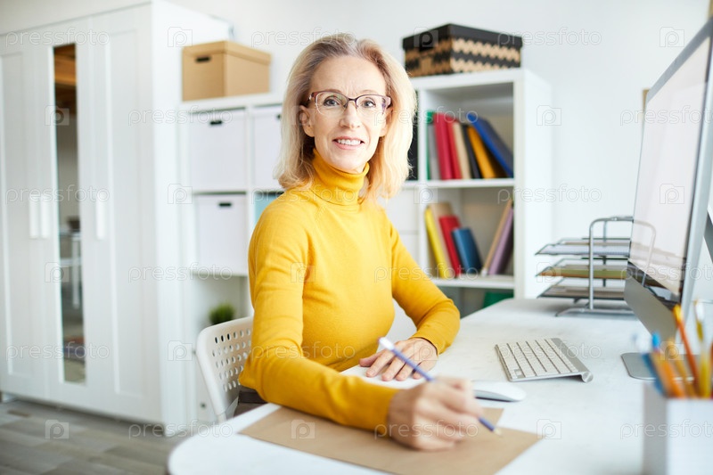 Деловая женщина на рабочем столе зрелая