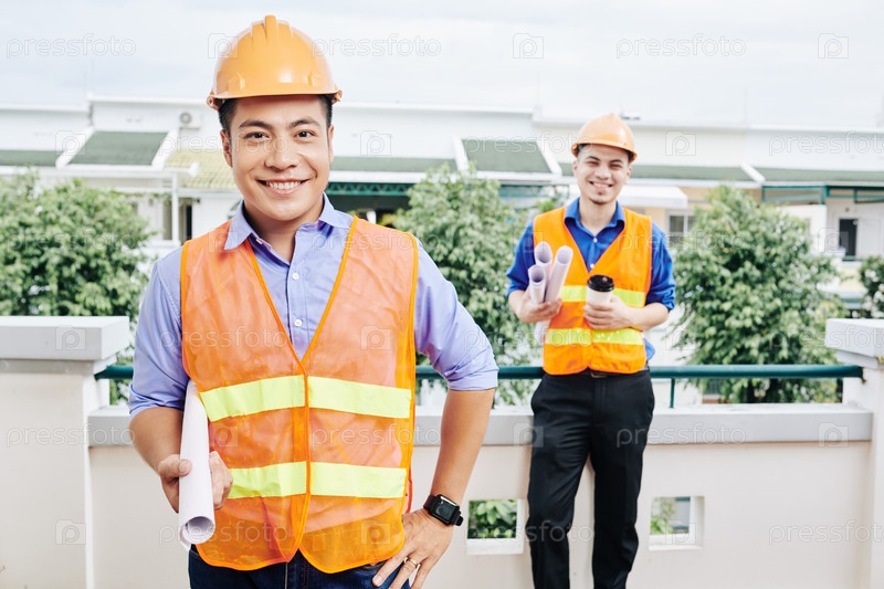 Позитивные строительные рабочие