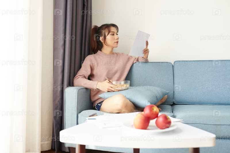 Женщина готовится к экзамену дома