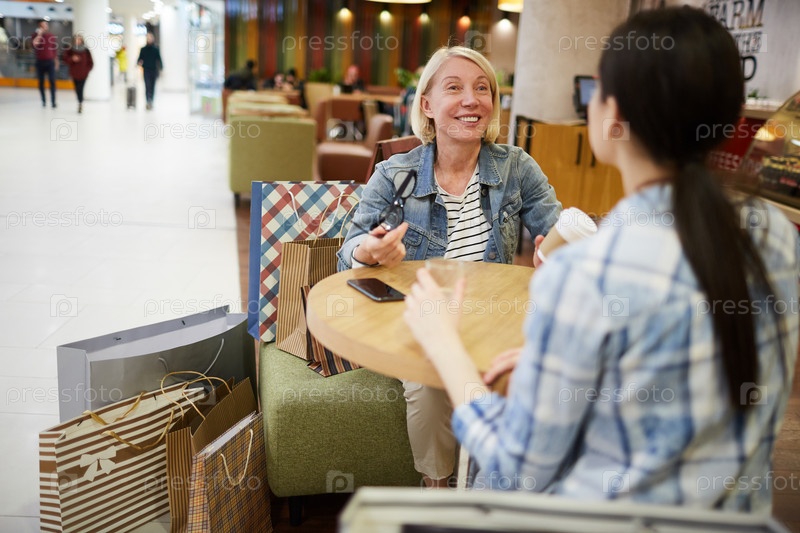 Веселая зрелая женщина делится эмоциями от покупок