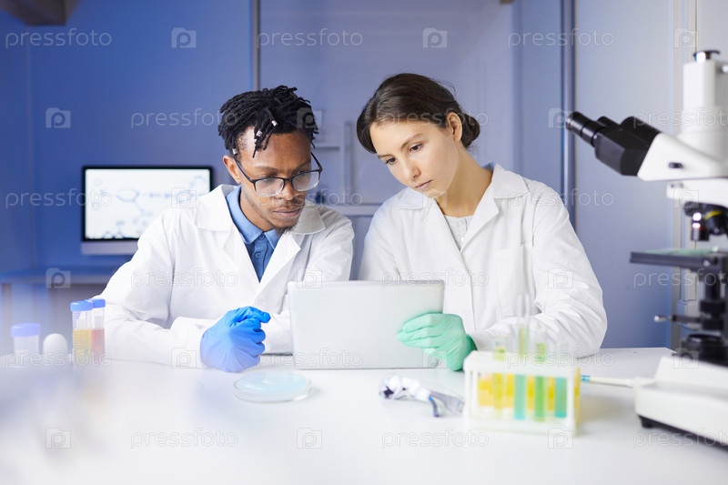 Команда молодых ученых, работающих в лаборатории