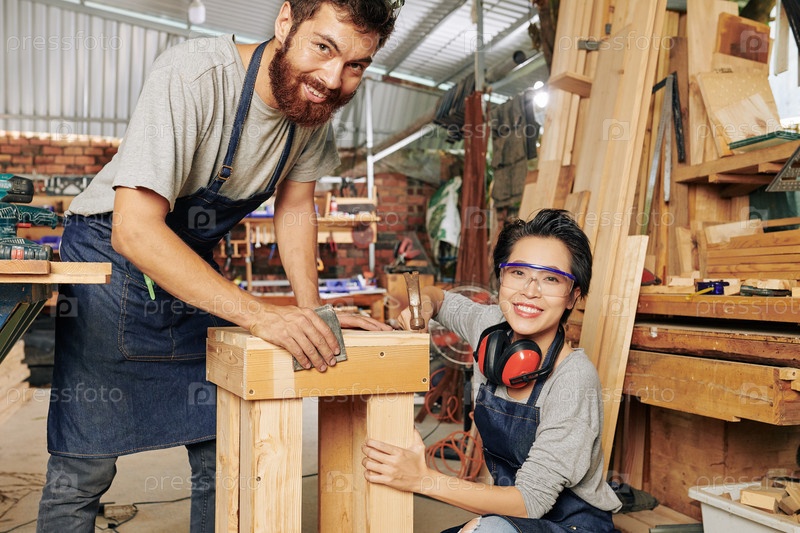 Веселые плотники делают мебель