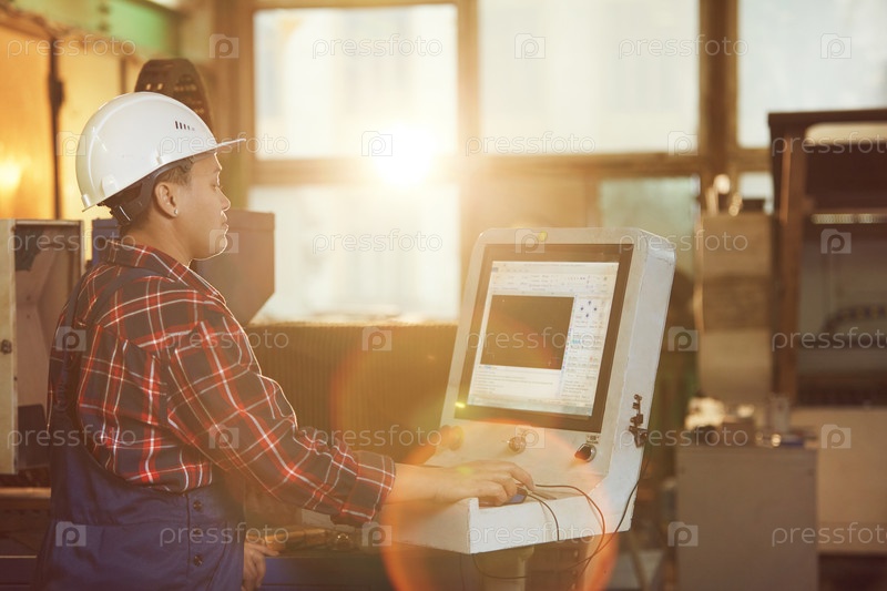 Работница, работающая на машинах под солнечным светом
