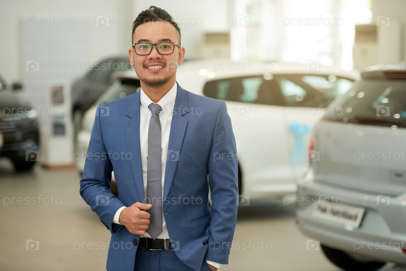 Продавец стоит в автосалоне