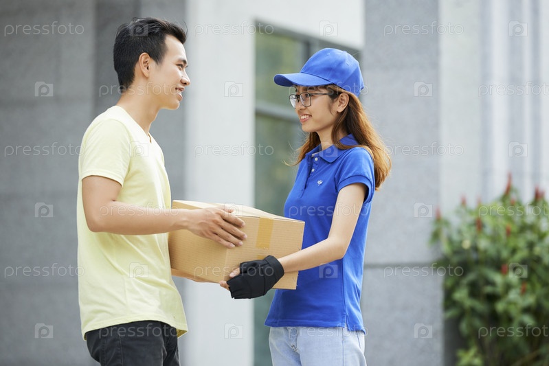Мужчина, получающий посылку