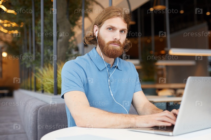 Мужчина, работающий онлайн в кафе
