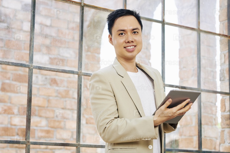 Бизнес-исполнитель в легком костюме