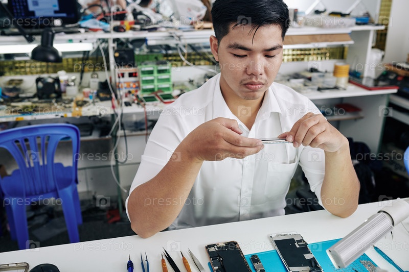 Ремонтник фотографирует смартфон