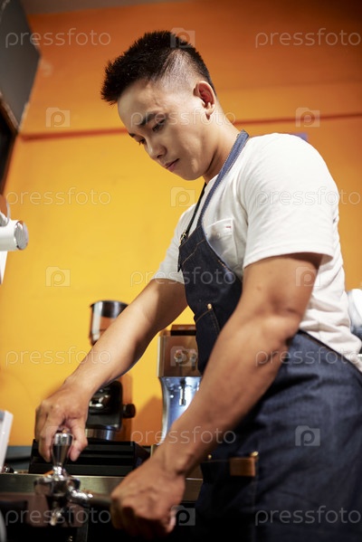 Официант делает эспрессо