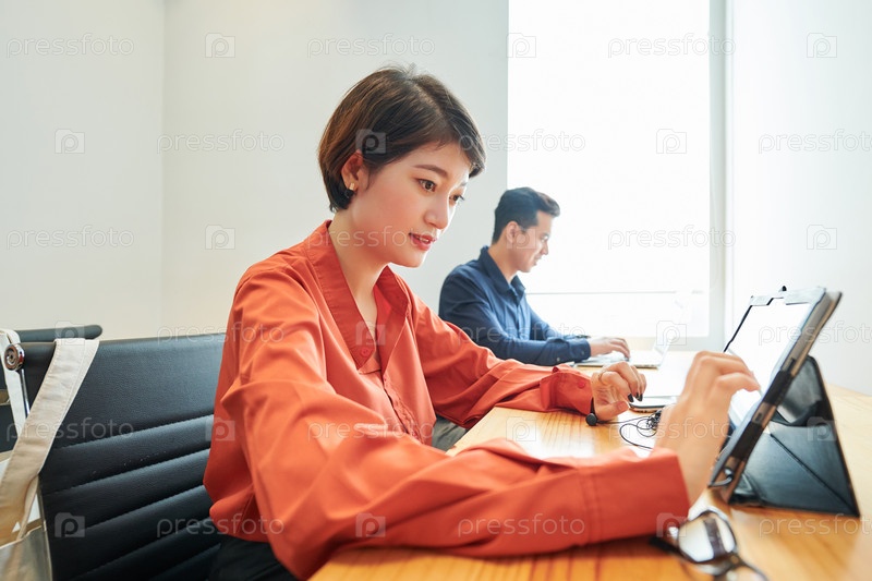 Деловая женщина, использующая планшетный компьютер