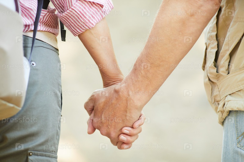 Зрелая пара, держащаяся за руки