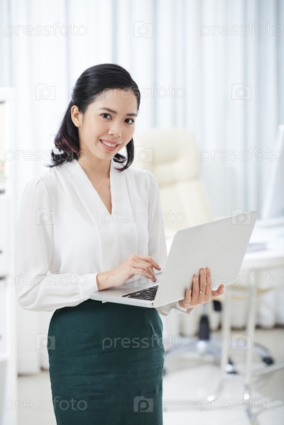 Азиатская бизнесвумен, работающая на ноутбуке