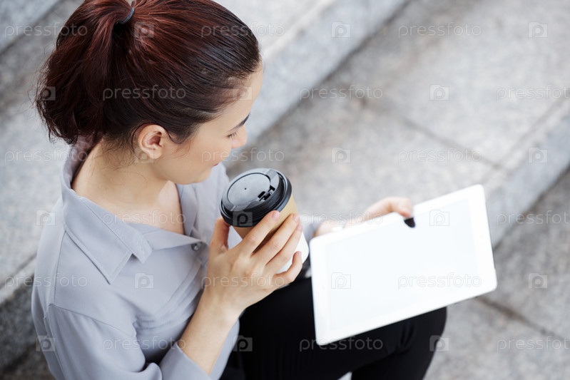 Женщина наслаждается кофе и хорошей статьей