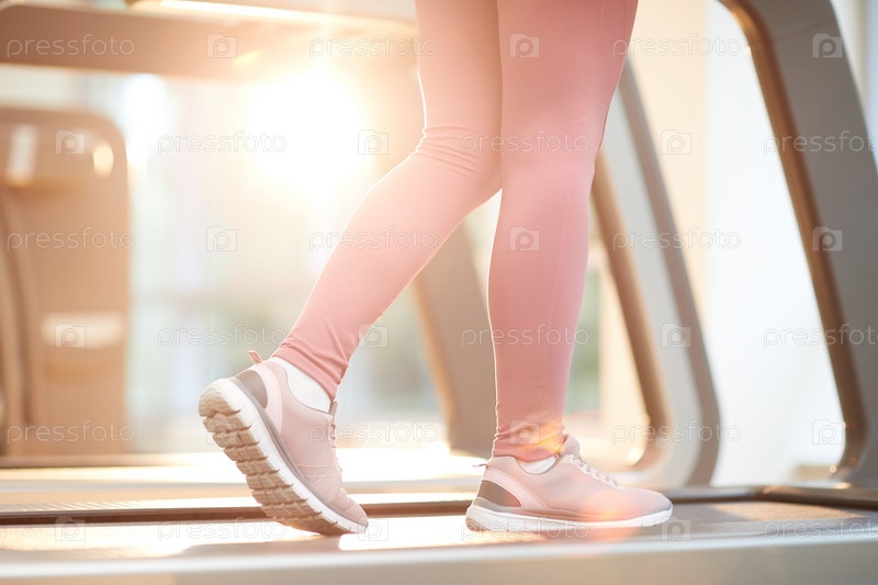 Женщина, бегущая на беговой дорожке Closeup